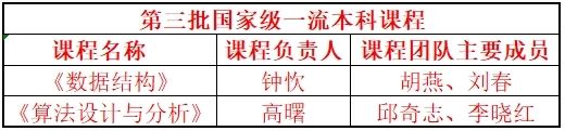 近日,教育部公布了第三批国家级一流本科课程认定结果,我院《算法设计与分析》与《数据结构》两门课程成功入选线上一流课程!这是学校推进教育教学改革、打造高质量课程体系的又一重要成果。