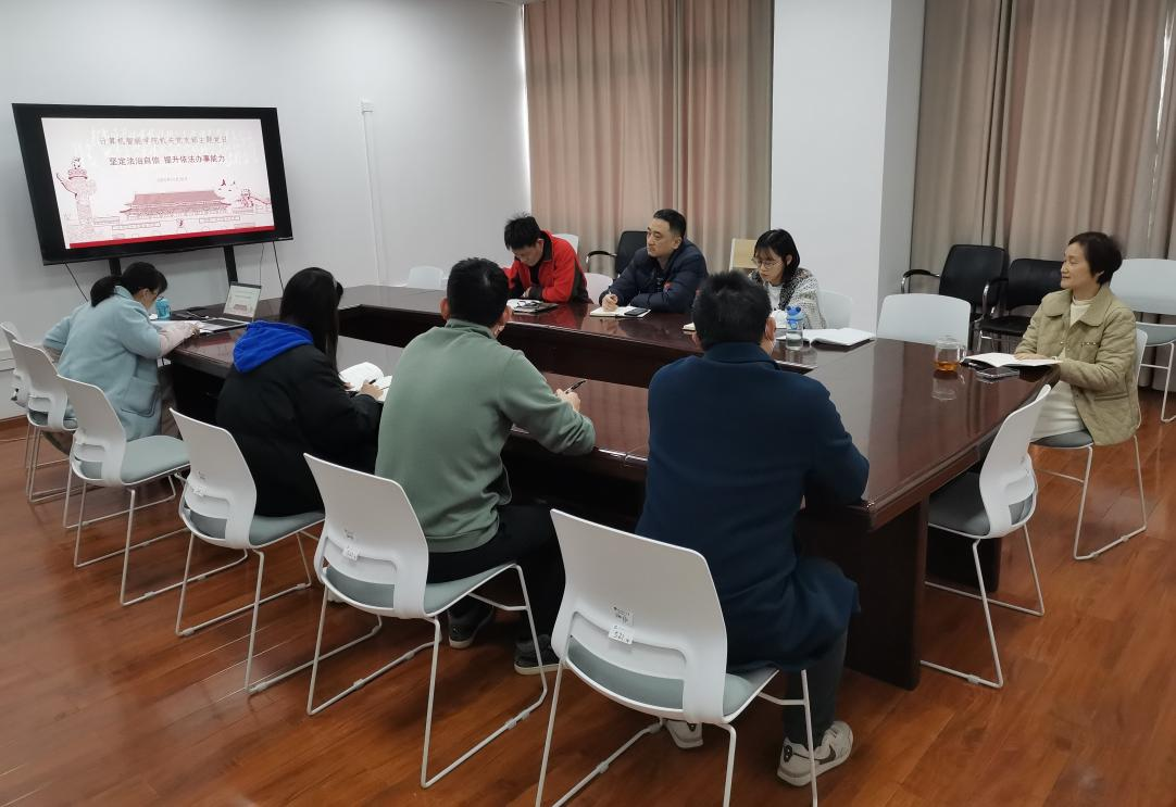 2023年12月28日下午,学院机关党支部在学海楼521会议室,开展了主题为“坚定法治自信 提升依法办事能力”的主题党日。本次活动由机关党支部书记章欢主持。