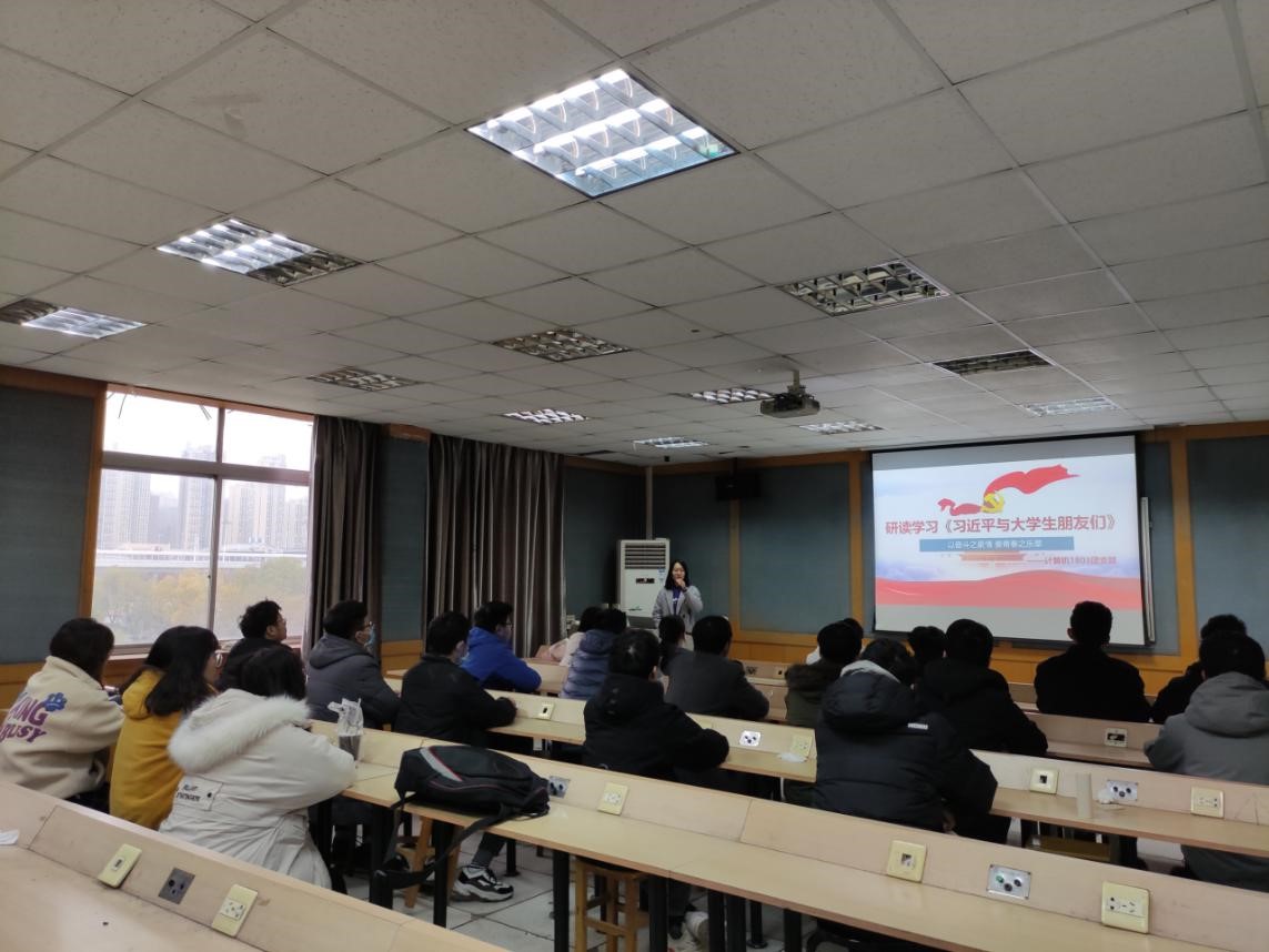 为了加强青年思想教育,引导同学们从不同年代青年与时代共奋进的真实经历中收获感悟、汲取力量,计算机1803团支部于2020年12月17日下午,在东配楼412教室开展了《习近平与大学生朋友们》研读学习交流会。团支部全体成员参加。