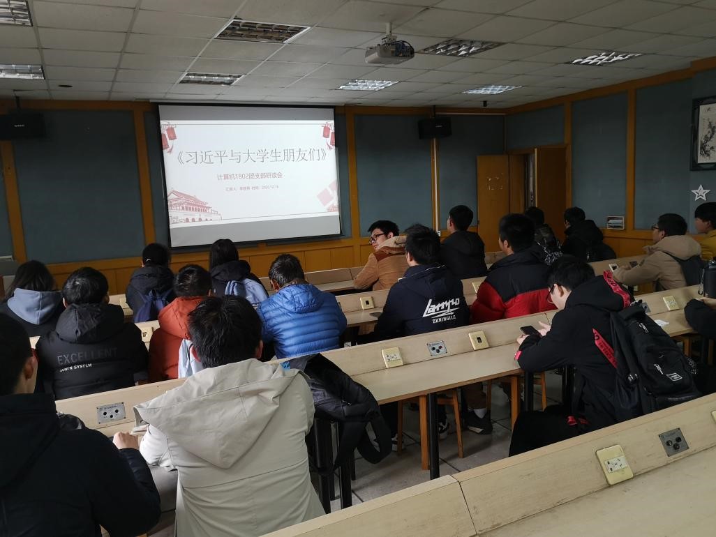 2020年12月16日上午,计算机1802团支部于东配楼412开展《习近平与大学生朋友们》研读会,全体成员参与此次研读学习活动。