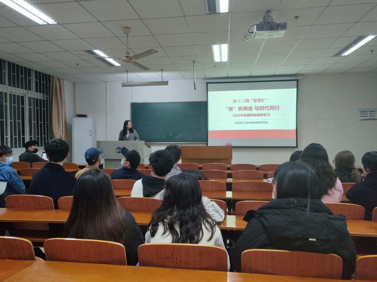 研究生会举办学习交流会,主题为“‘青’听两会,与时代同行”,集中学习两会相关内容。