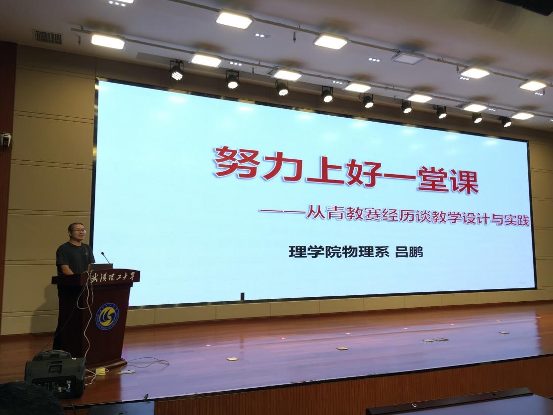 为进一步落实立德树人根本任务,进一步提高广大教师以教学设计为重点、提高课堂教学效果的教学能力, 学院邀请第七届湖北省高校青年教师教学竞赛获理科组一等奖获得者,理学院青年教师吕鹏于9月15日在南湖图书馆一楼报告厅为我院教师做《努力上好一堂课》的专题报告。