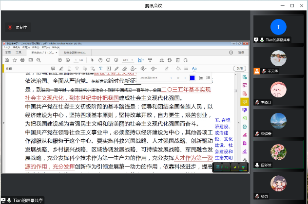 田璟同志结合中国共产党第二十次全国代表大会秘书处负责人就党的二十大通过的《中国共产党章程(修正案)》答新华社记者问内容,以及自己的学习体会,就二十大为什么要修改党章、本次党章修改工作的主要特点、党章修正案充实完善习近平新时代中国特色社会主义思想的科学内涵和历史定位的重大意义、增写党百年奋斗的重大成就和历史经验的意义、社会主义初级阶段相关内容的调整和充实、“五位一体”总体布局方面的调整充实、党的建设总体要求的调整充实等内容进行了学习。