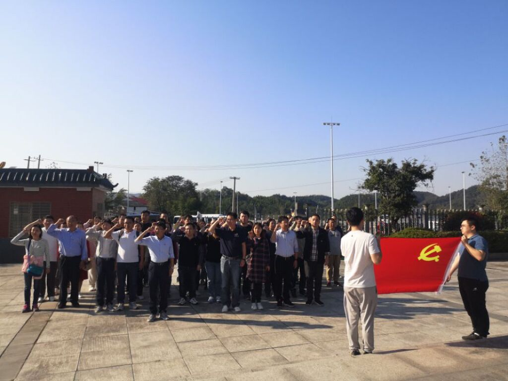 青山埋忠骨,翠柏勉英魂。在庄严的革命烈士纪念碑前,全体党员肃穆而立,聆听讲解员讲述那段可歌可泣的英雄史诗,缅怀革命者的丰功伟绩。随后,全体党员一同在革命烈士纪念碑前重温入党誓词,表达个人传承红色基因、担负国家使命的坚定意志。
