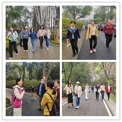一路上,女教工们步伐铿锵,欢声笑语,大家呼吸着新鲜的空气,聆听着虫鸣鸟叫,欣赏着早春的美丽景色,感受着运动带来的舒畅。有的老师们带着孩子,给他们讲述春天的故事,有的老师们用手机记录途中漂亮的风景,大家三三俩俩,轻松愉快的漫步在步道上。