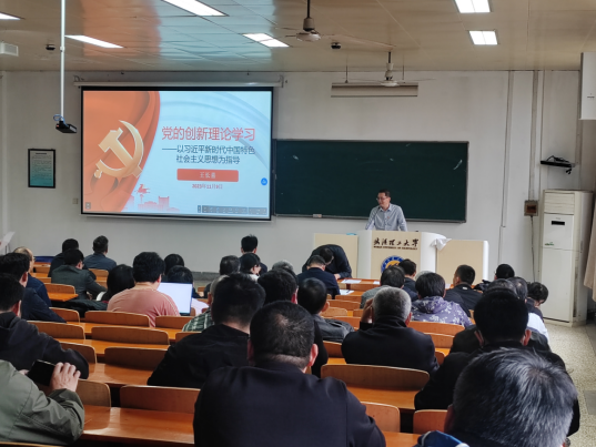 11月9日下午,计算机智能学院党委、后勤保障处党总支在鉴三--501教室联合举办教工党员培训班,开展党员教育培训。本次培训由机电学院正处级组织员王长喜同志作党的创新理论学习辅导报告,计算机智能学院和后勤保障处全体党员参加。