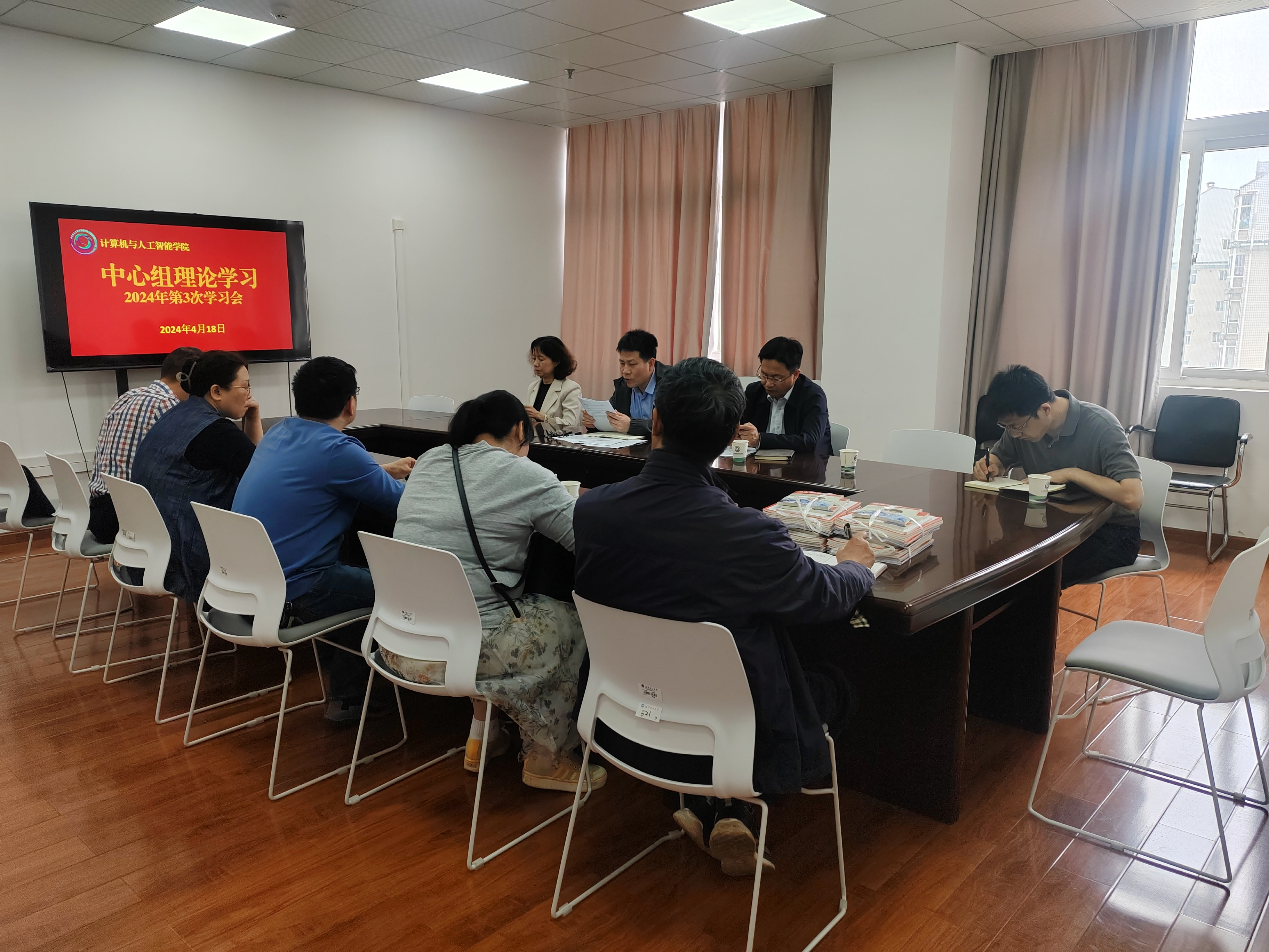 4月18日下午,学院党委理论学习中心组在学海楼521会议室开展2024年第3次集体(扩大)学习,学院领导班子成员、党委委员和各教工党支部书记参加学习,学院党委书记张晓寒主持学习。