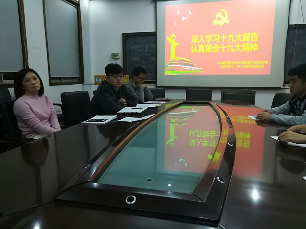 答辩结束后,党支部成员还同发展对象们一起学习了党的十九大报告的有关内容,大家各抒己见,提出了自己的学习体会,学习氛围十分热烈,学习效果进一步强化。