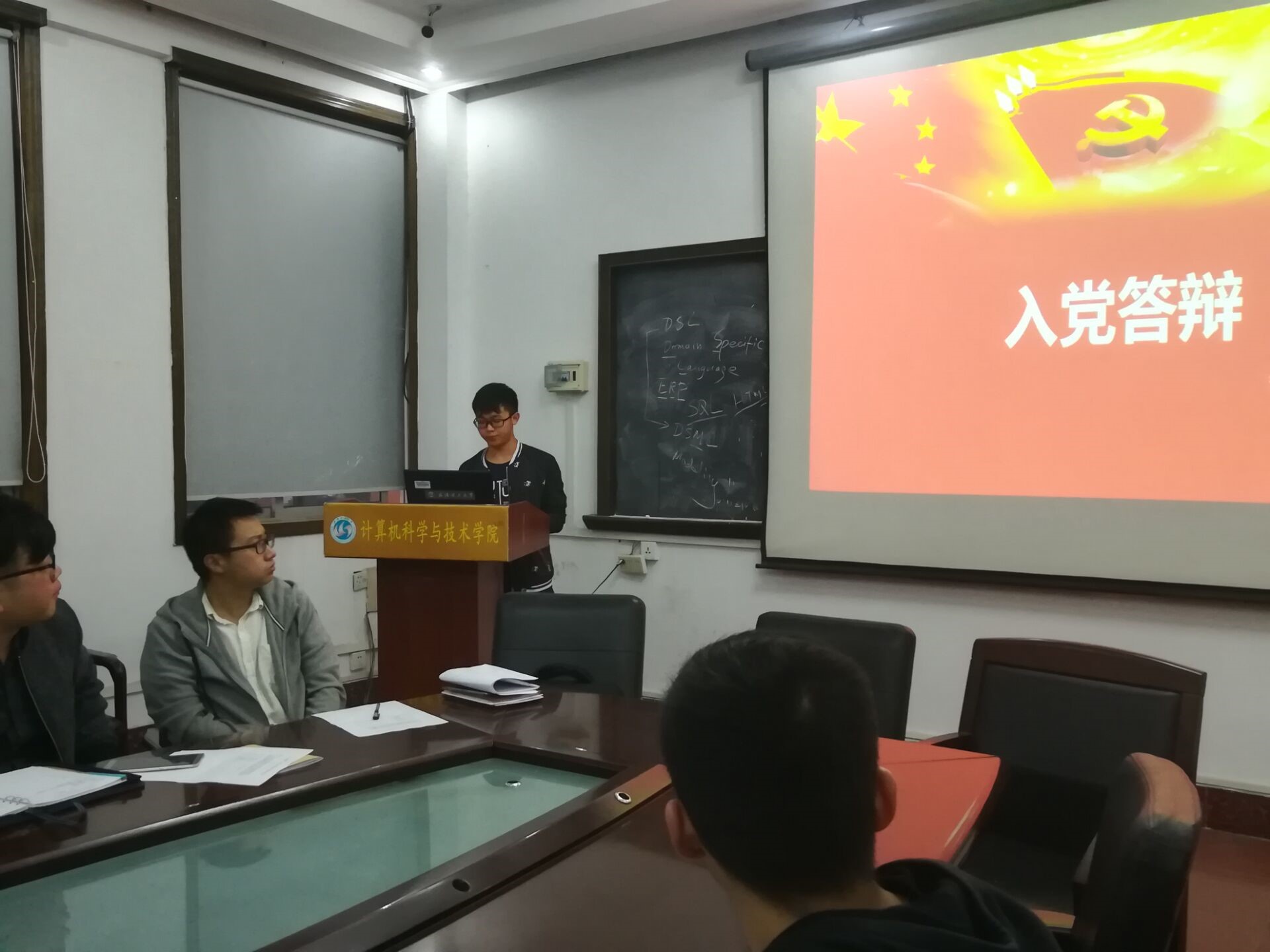 为进一步完善我院学生党员发展工作机制,切实保证发展党员的质量,促进基层党组织建设的制度化和规范化,10月27日下午,计算机学院余区2016、2017级本科生党支部于东配楼305教室举行入党积极分子答辩活动。