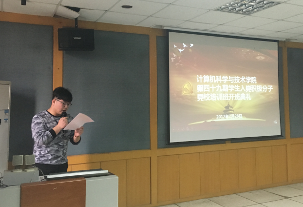 3月28日16:00,计算机科学与技术学院分党校第四十九期入党积极分子培训班开学典礼在东配楼412隆重举行,学院党委副书记石琳,学生党总支副书记朱莉,本期培训班班主任肖建波老师及年级辅导员出席了此次典礼,参与本次学习的还有教工积极分子1人,学生积极分子78人。典礼由本期班主任肖建波老师主持。