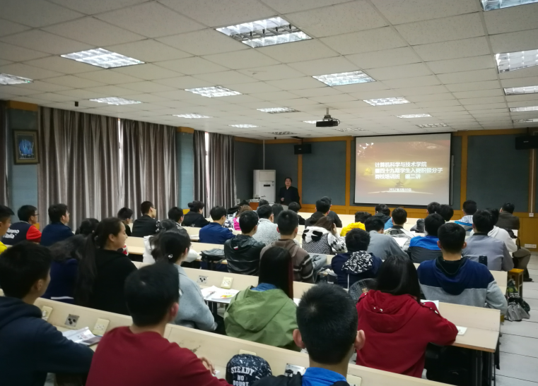 3月30日下午16:00,计算机科学与技术学院第四十九期入党积极分子党校培训班第二讲在东配楼412举行。本次培训由肖建波老师担任主持,宣传部部长黄百成教授主讲。