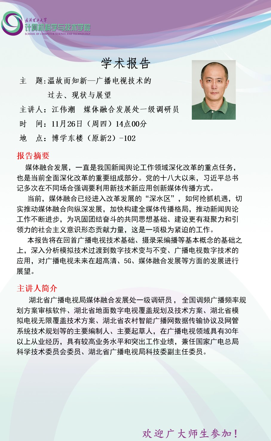 【计算机学院学术讲座】温故而知新—广播电视技术的过去、现状与展望