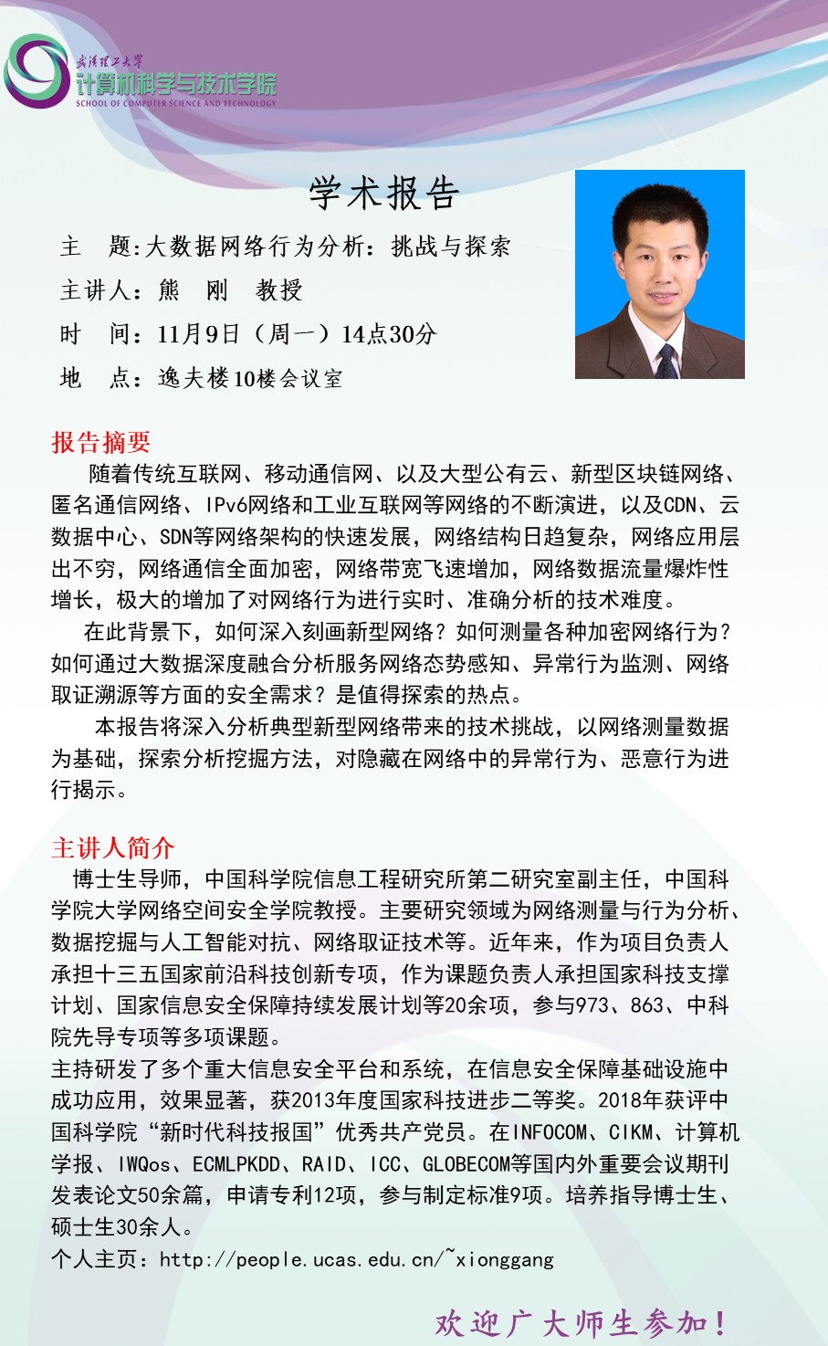 【计算机学院学术讲座】大数据网络行为分析:挑战与探索