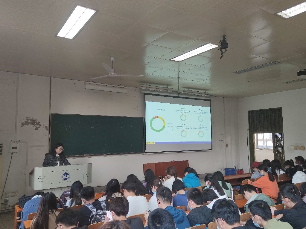 随后,辅导员对各个班级的绩点情况、生涯规划意向进行分析。从绩点分布情况可以看出,大部分同学均可以按时完成学业任务,成绩分布也较为平衡。根据收集到的结果,准备读研的同学人数占多数,仅三分之一的同学选择就业。陈老师提醒大家把握好对未来的职业生涯规划,根据当下的社会情况选择适合自己的赛道。