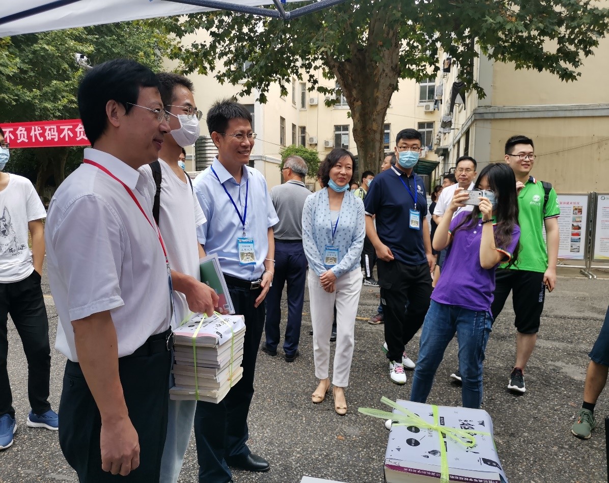 同时,他们还介绍了自强社的“旧书圆新梦”活动,从已经毕业离校的同学手中收集教材并整理成整套教材,然后将它们赠送给需要的学生,减轻他们的购书经济负担。迎新过程中,学校党委书记信思金莅临指导,并亲自为办理生源地贷款的新生捐助大学教材一套。